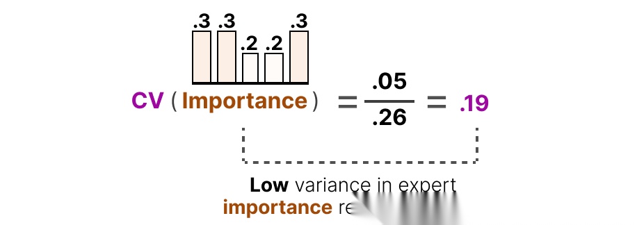 变异系数用于衡量所有专家重要性分数的离散程度,计算公式为:
