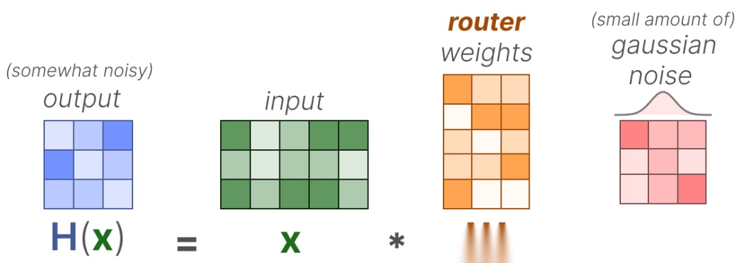 - 引入高斯噪声:在计算适配分数时,加入少量可训练的高斯噪声(),打破热门专家的分数垄断: