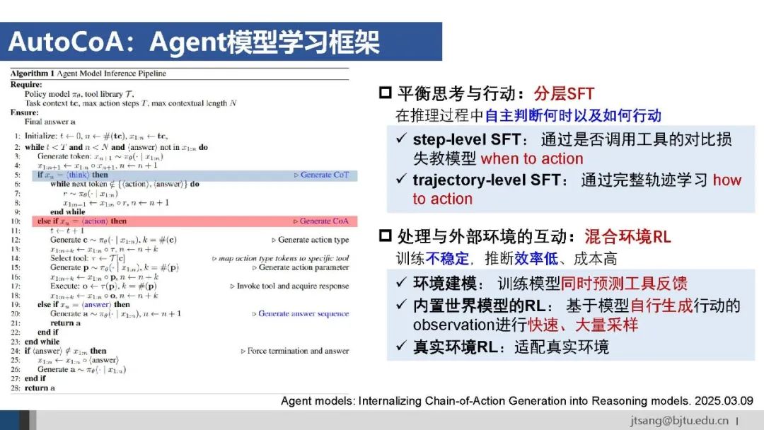 Agent模型学习框架需要平衡思考与行动,并处理外部环境交互带来的训练不稳定和效率低成本高的问题。