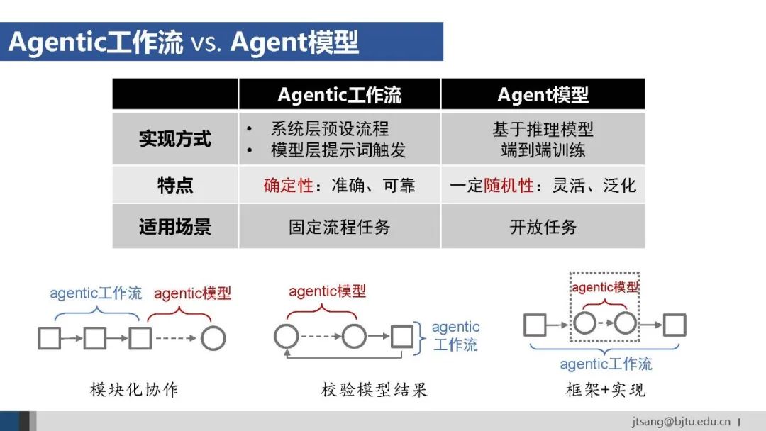 Agent模型探索能力上限,Agentic工作流保证任务执行下限,二者在很长时间内将结合使用。