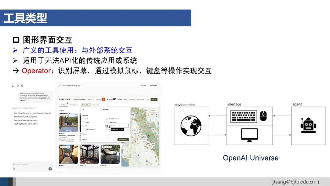 AI Agent可调用的工具主要有API接口、数据库和知识库、外部模型等。对于无法API化的外部系统,可以将图形界面交互也封装成工具供Agent调用。
