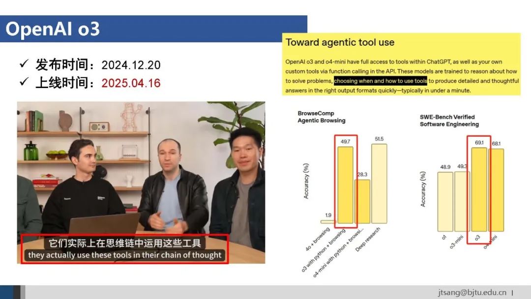 基于端到端学习的Agent模型o3于4月16日正式上线。Greg Brockman在介绍时明确说o3学习“在思维链中使用工具”。