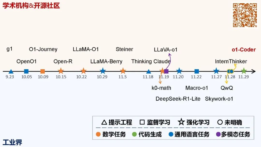 之后学术界和开源社区出现了大量复现工作。和预训练需要大规模集群不同,推理模型的学习聚焦后训练阶段,算力资源的门槛相对较低。