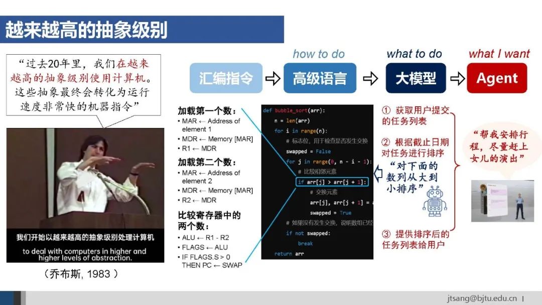 如乔布斯40年前的预言,从how to do、what to do,到what I want,用户只需描述“我想要什么”,Agent自动完成“怎么做”。AI Agent代表了新的抽象层,已经无限接近人类思维。