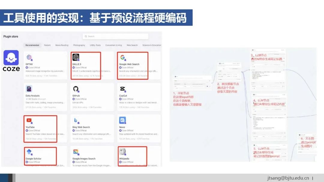 使用工具的第一种方式是**系统层的预设流程,**即通过硬编码方式定义Agent的行为逻辑。