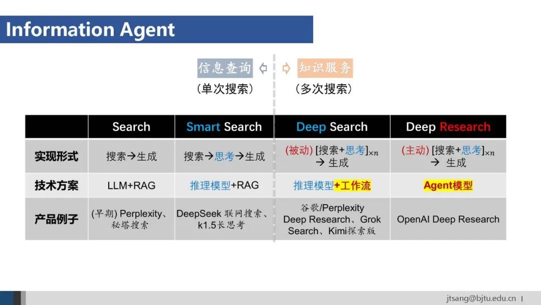 Information agent从基于单次搜索的信息查询,发展到基于多次搜索的知识服务。