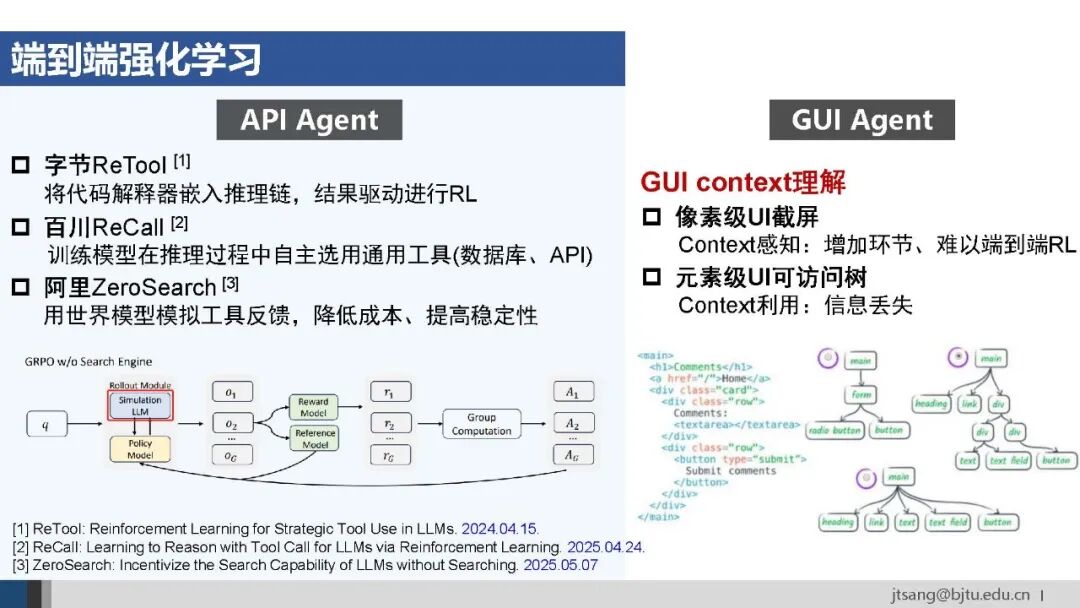 从实现方式看,工作流的方法需要面向任务设计具体的执行逻辑;基于RL学习的方法,则需要根据任务目标,设定准确的环境奖励。