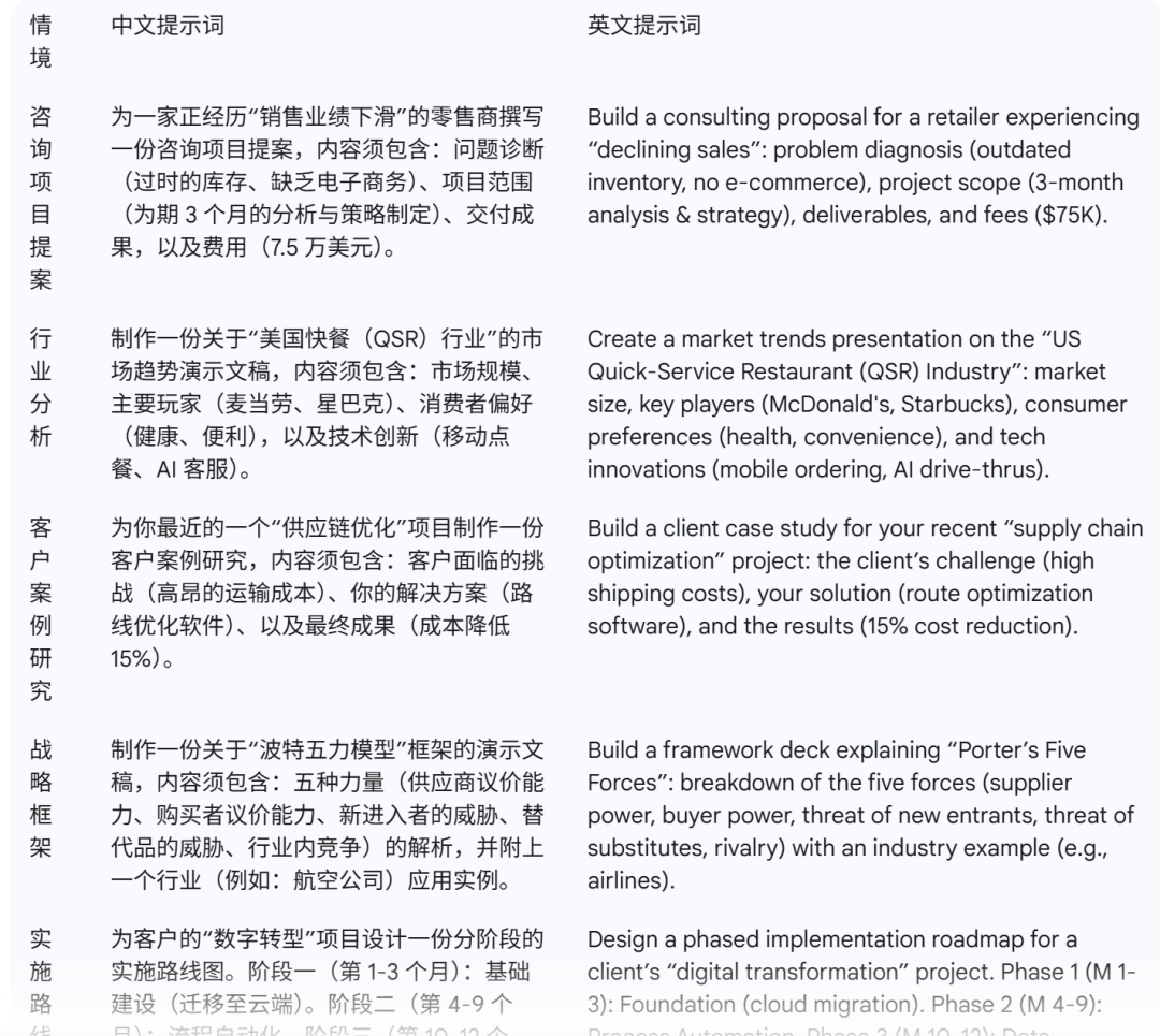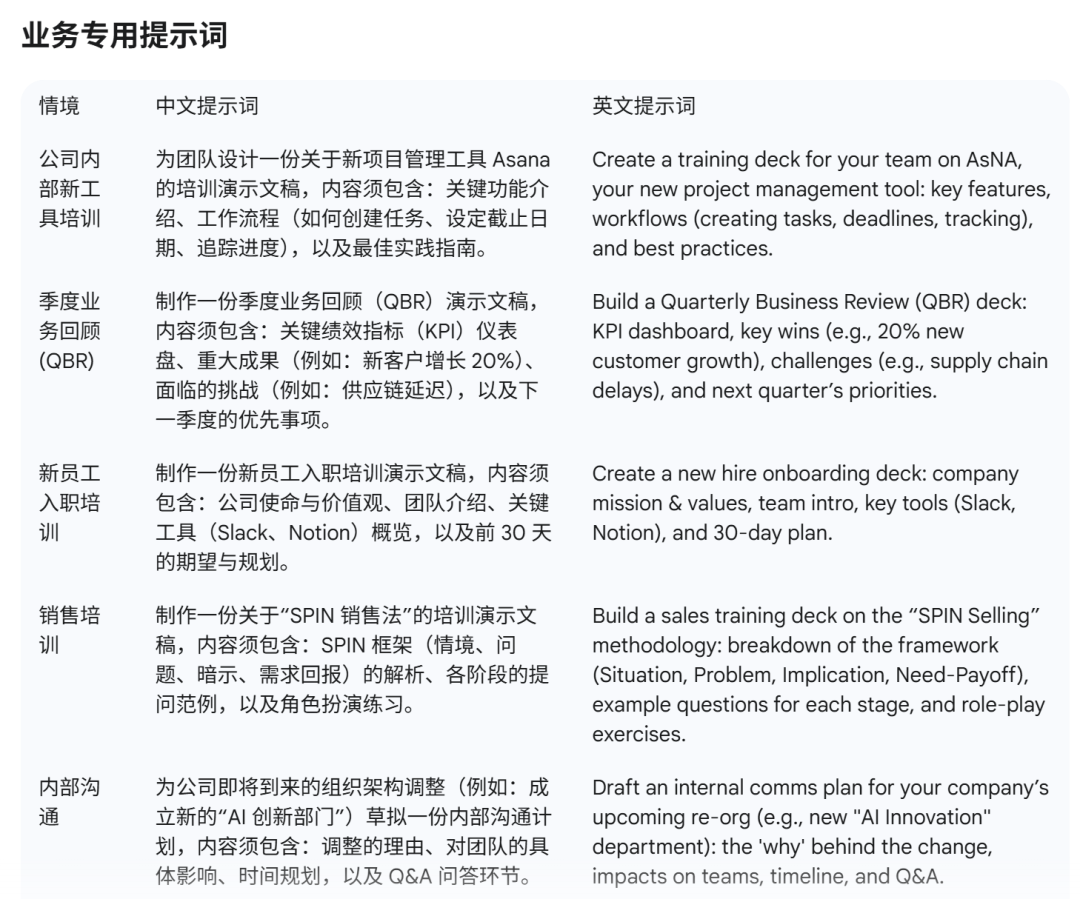 因此,官方这次发布的这 100+ prompt,里面包含了通用提示词,业务、营销、教育、咨询这几个方面