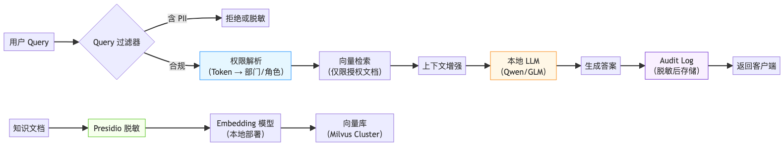 注意:脱敏后的 Query 仍需用于 Embedding 生成,确保检索准确性不受影响。