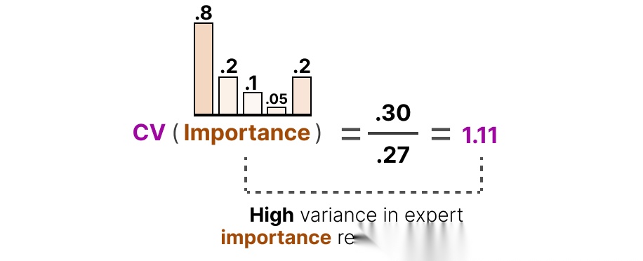 变异系数用于衡量所有专家重要性分数的离散程度,计算公式为: