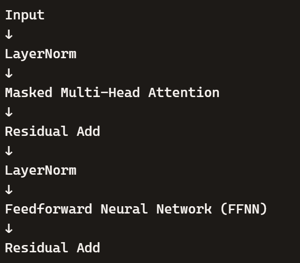 GPT 系列采用这种结构,训练更稳定,梯度传播更顺畅。