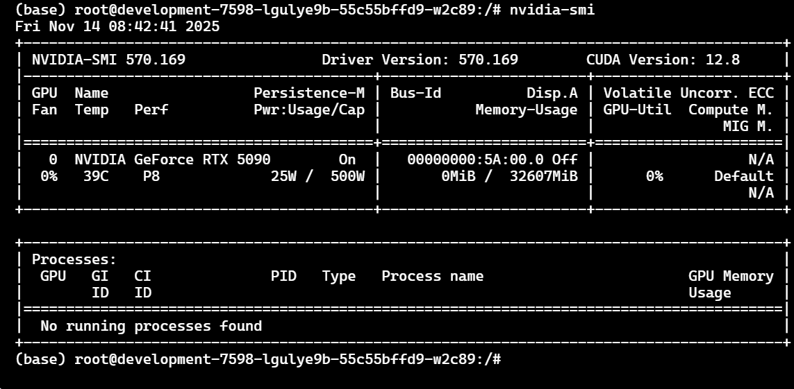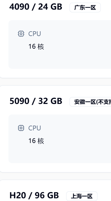 从 RTX 4090 到 H20 / L40 / H800,再到这次体验的 RTX 5090(32G 显存),你基本能在任何时间段租到需要的卡。