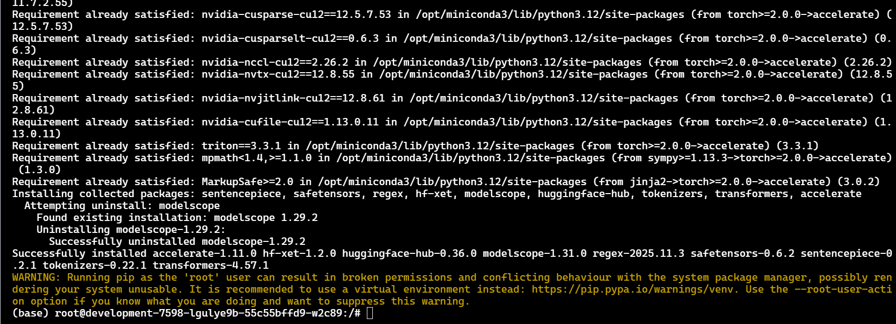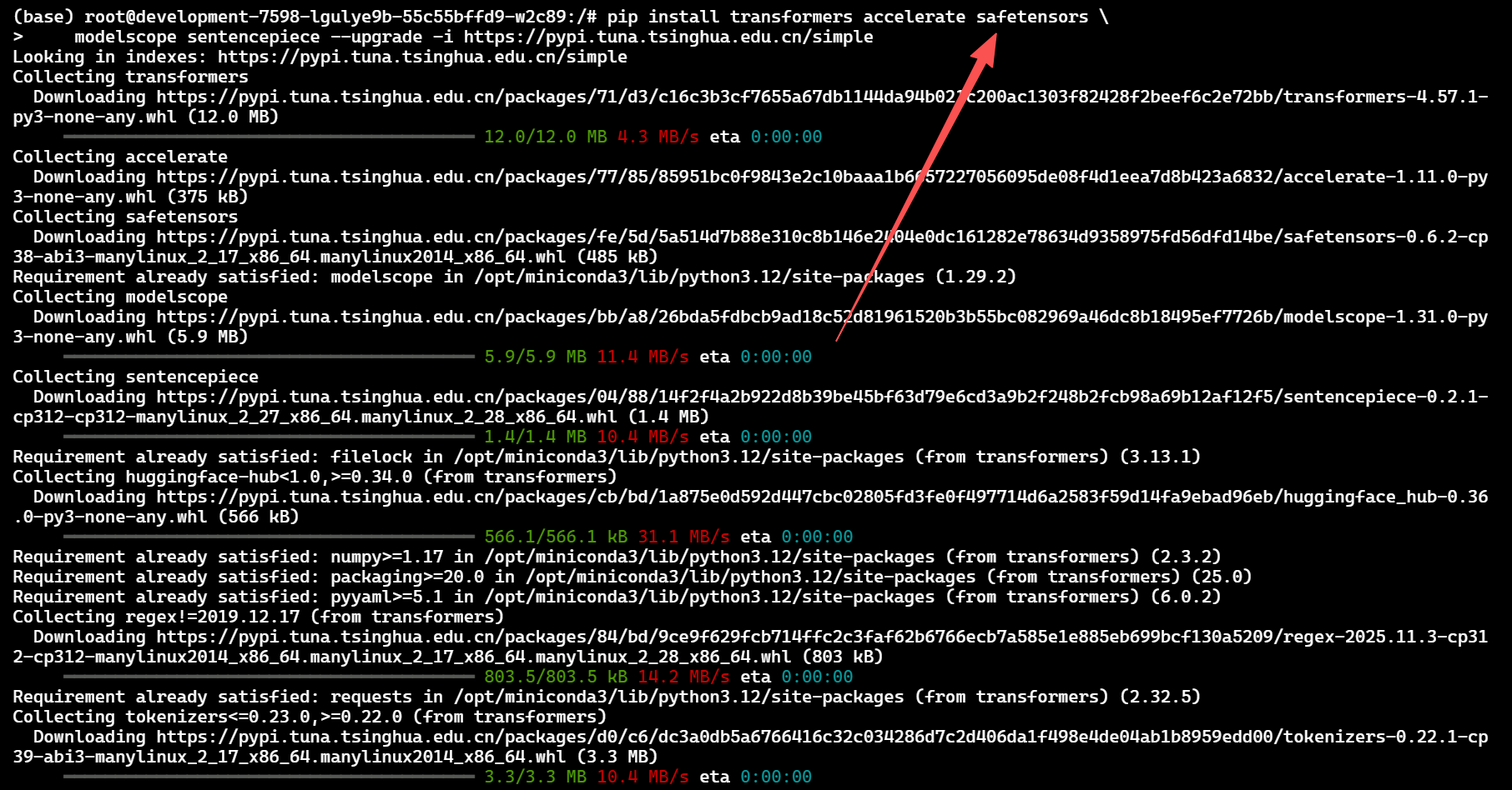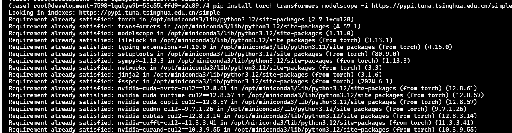 pip install torch transformers modelscope -i https://pypi.tuna.tsinghua.edu.cn/simple