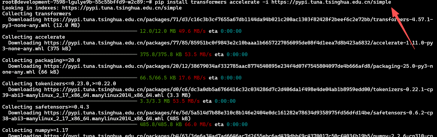 pip install transformers accelerate -i https://pypi.tuna.tsinghua.edu.cn/simple