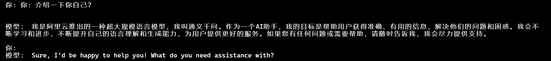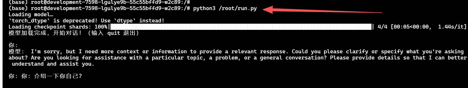 print("模型加载完成,开始对话!(输入 quit 退出)")