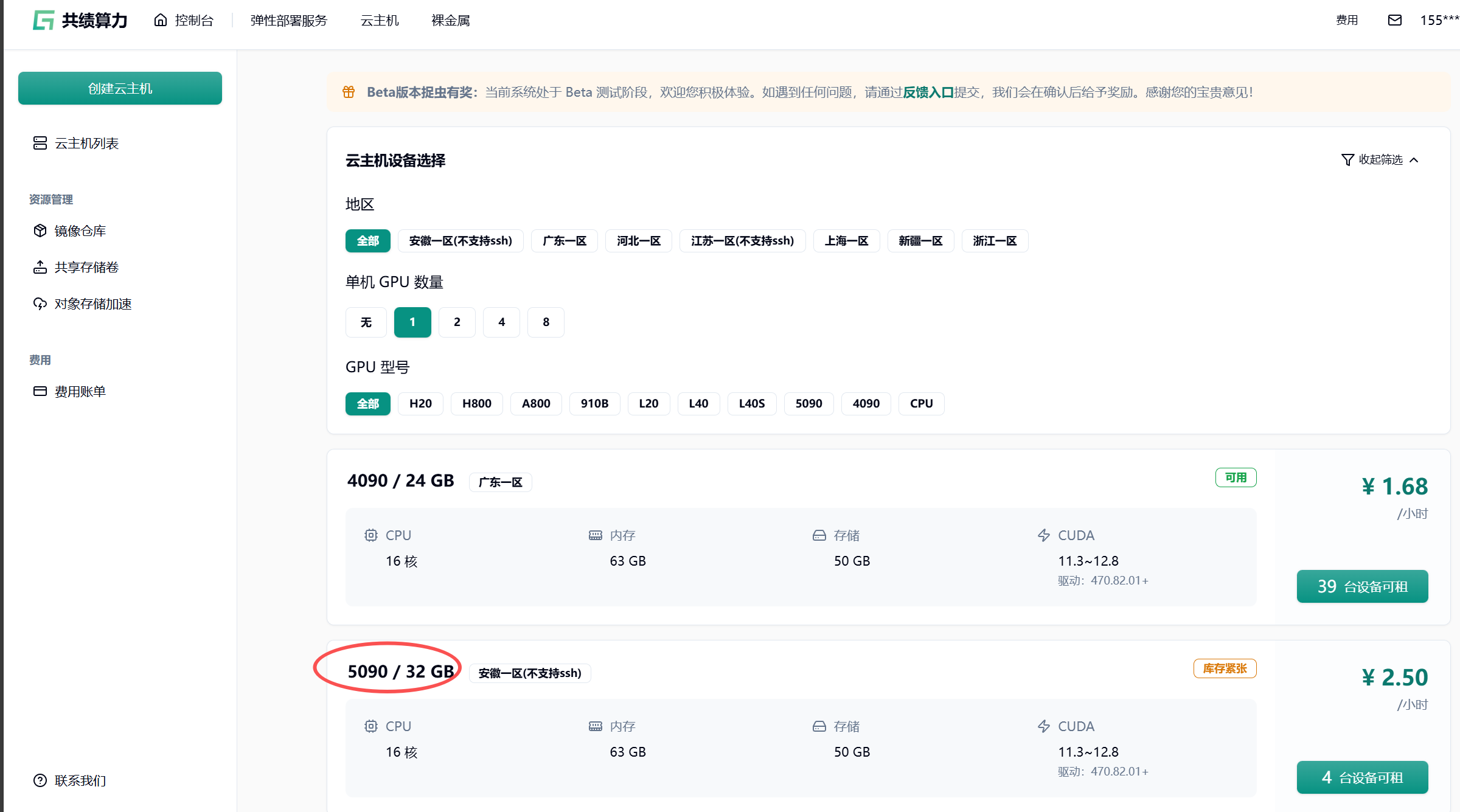 今年我测试了数十家 GPU 云厂商,从配置、镜像、模型兼容、计费方式到实际训练推理表现,最终脱颖而出的,是这次体验的主角——共绩算力 RTX 5090 云主机。