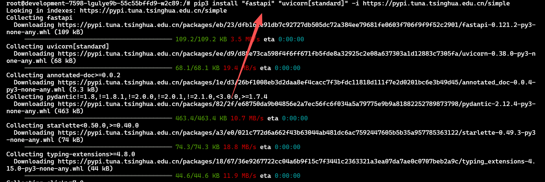 pip3 install "fastapi" "uvicorn[standard]" -i [https://pypi.tuna.tsinghua.edu.cn/simple](https://pypi.tuna.tsinghua.edu.cn/simple)