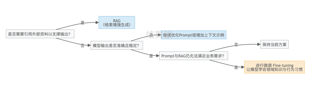 3️⃣ 微调阶段(Fine-tuning):当你发现,Prompt 已经写到极致;RAG 检索再多也答不准;模型行为依然不稳定、风格不统一; 这时就说明: