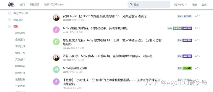这里推荐大家去看看AiPy的案例库,里面有各行各业的案例可以学习,从文化领域到金融行业再到代码编程,都有案例可学,帮助你快速定位适合自己的方向。有位从事HR行业的测评小伙伴学习经验后,用AiPy做出了价值数万的企业级别的自动化招聘系统。