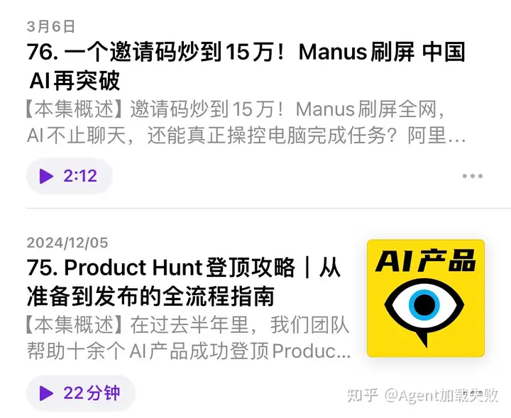 ⑤产品人看AI:每期友好时长,专门讲AI产品。它的主播本身就是做产品的,角度比较专业。