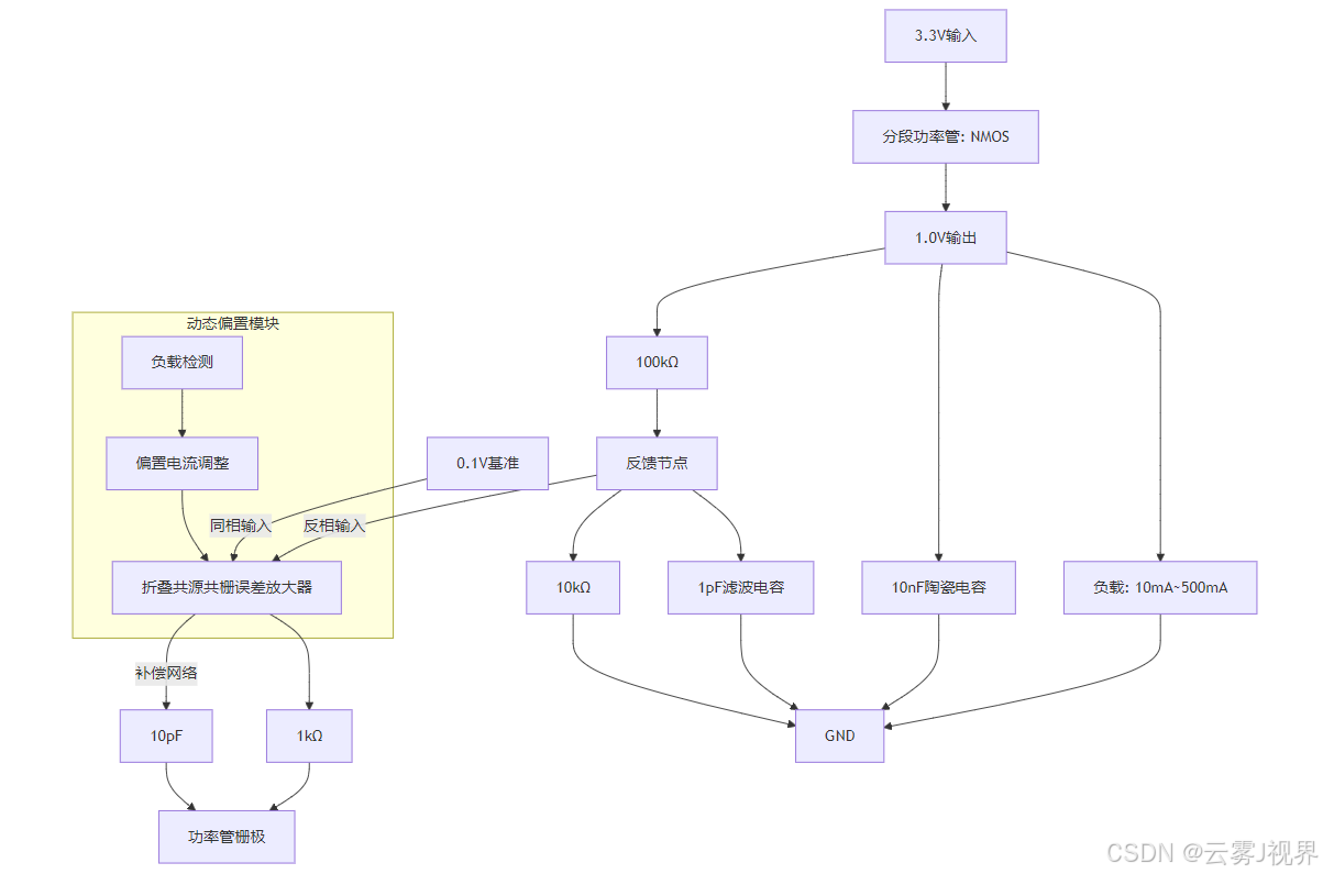 - 噪声与功耗权衡:低噪声要求误差放大器采用大尺寸MOS管,导致静态电流增加;
