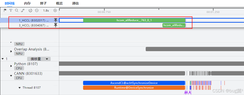 从上图的 msprof 剖析结果中我们可以清晰地看到aclrtMemcpy (H2D 和 D2H) 占用了50毫秒,而模型本身的执行时间 aclmdlExecute 仅占用了XX毫秒。CPU为了准备数据和处理结果,导致NPU有XX%的时间在“空转”等待。