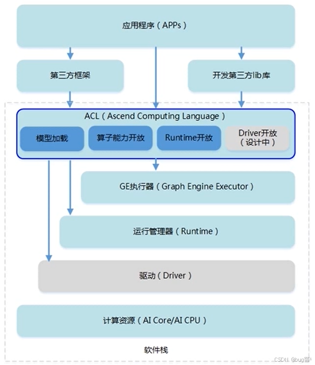 om离线模型。 - AscendCL (ACL) 接口: (本文的主角) 它位于图引擎之下,Runtime 之上。它是一个 C/C++ API 库,是上层应用与底层硬件交互的统一入口。