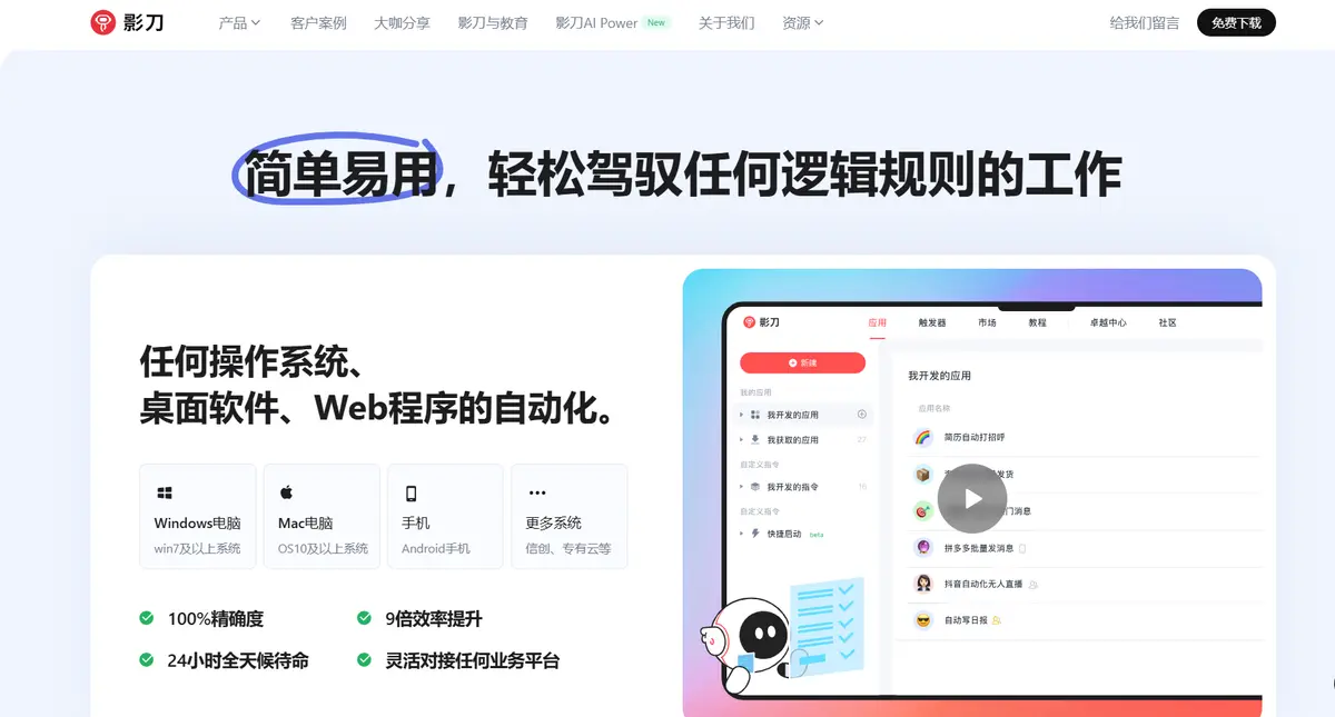 3. 影刀 RPA:中小企业的 "性价比之王",兼容性超强