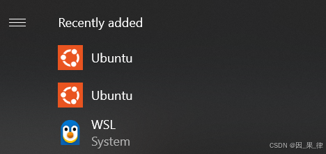 4.安装成功后,开始菜单中可以看到 Ubuntu 和 WSL。