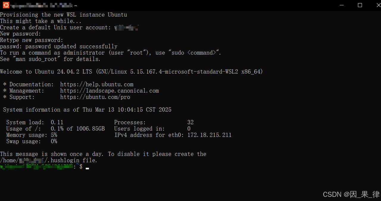 5.启动Ubuntu。首次登录需要设置用户名和密码。