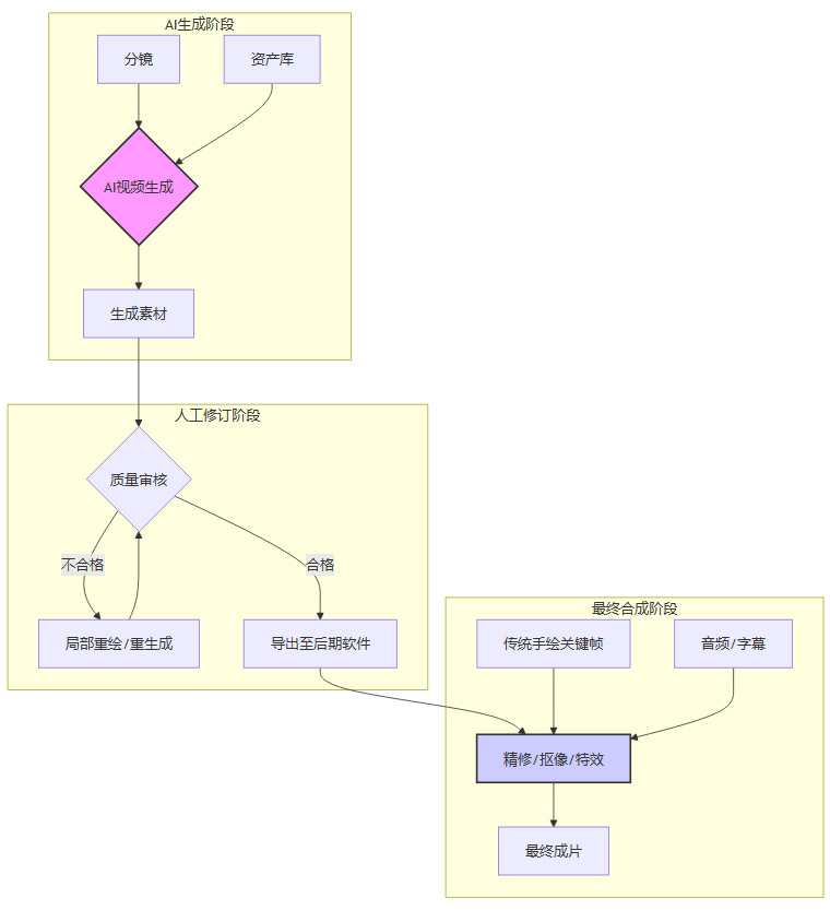 当前阶段,纯AIGC工作流在应对高品质、复杂镜头时仍有局限。“AI生成 - 人工修订 - 最终合成”的混合工作流,是兼顾效率与质量的现实选择。