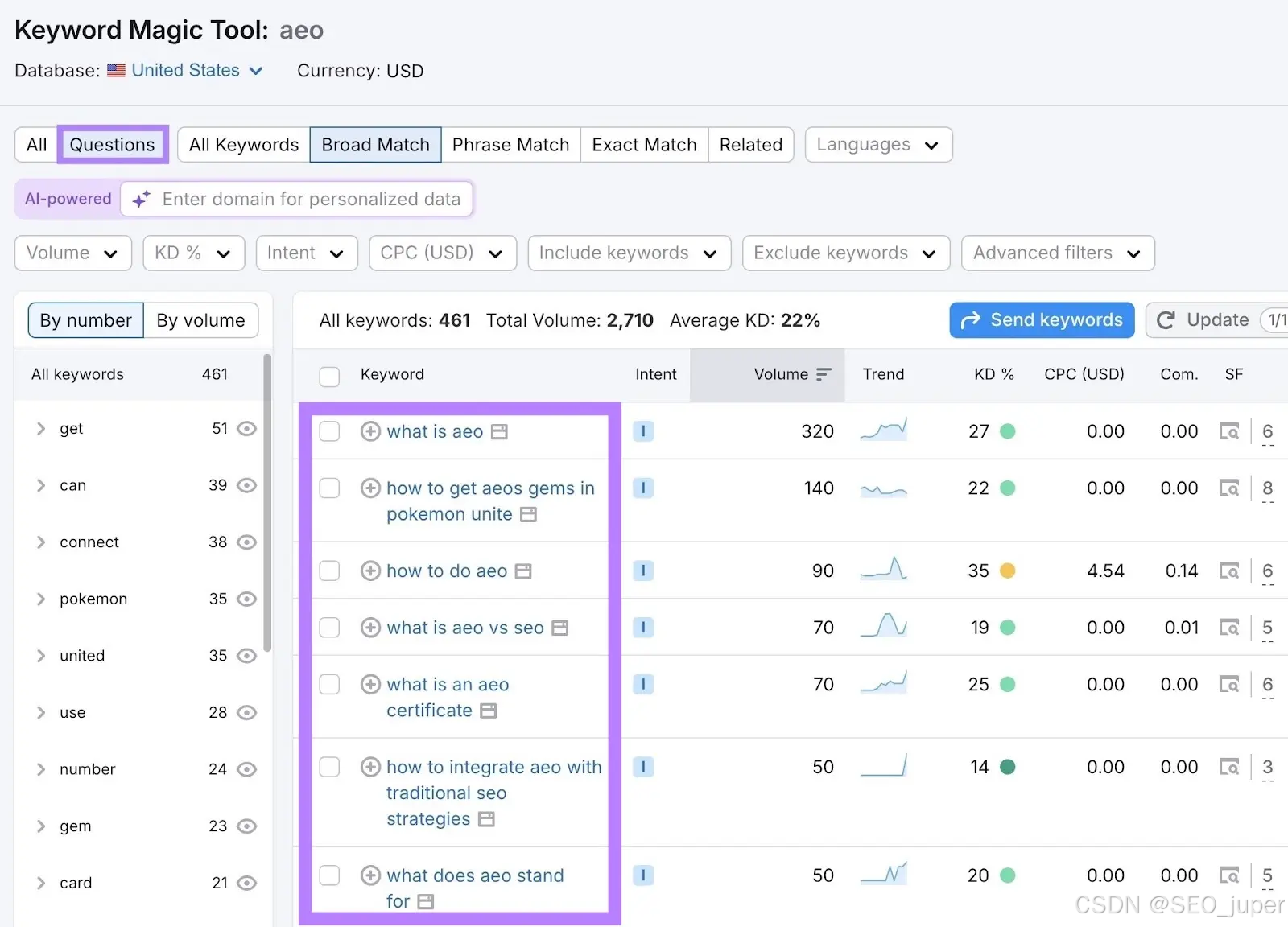 使用Semrush关键词魔法工具挖掘有价值的问题