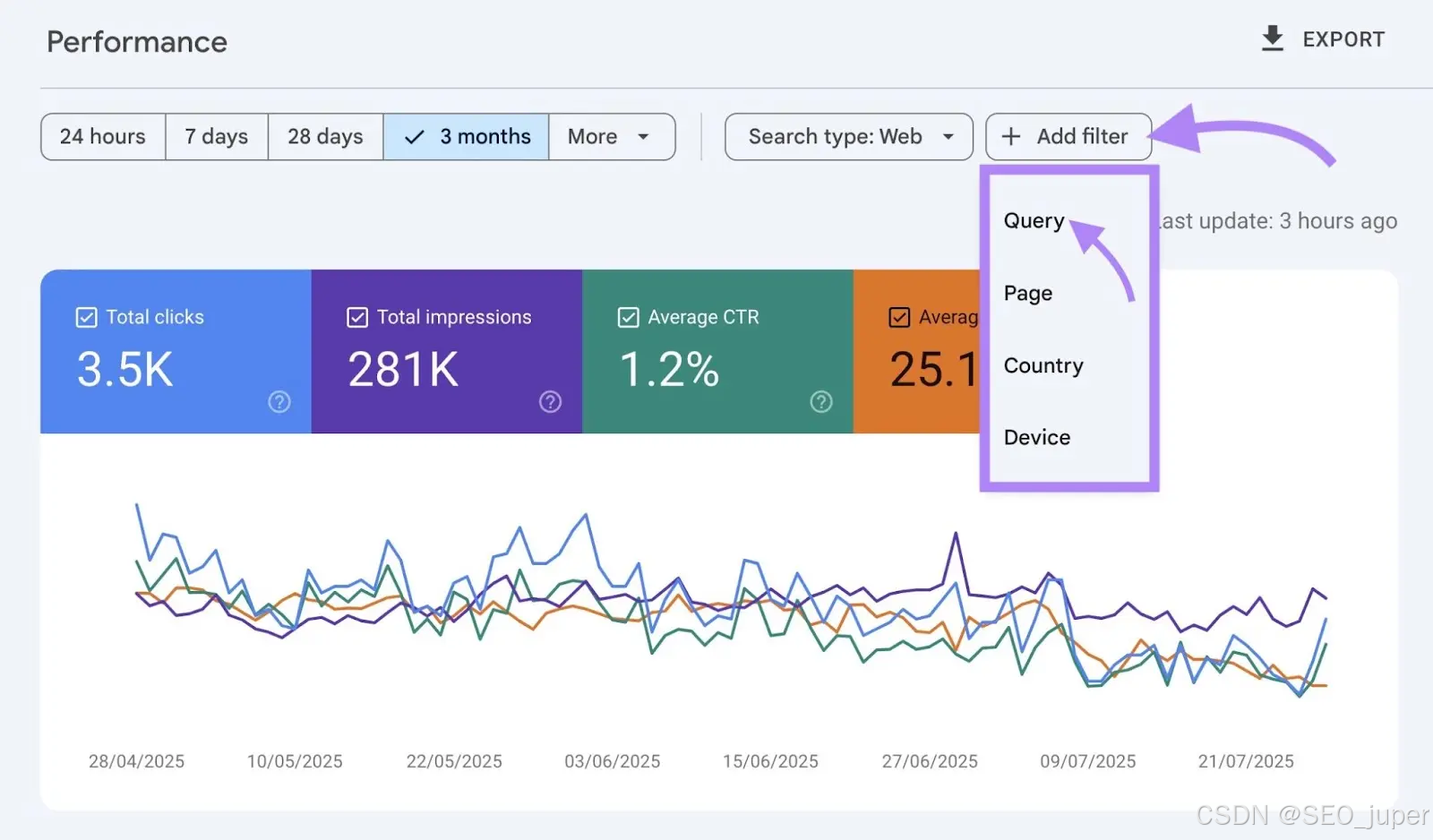 登录搜索控制台,点击"+添加筛选器"按钮,选择"查询"选项。