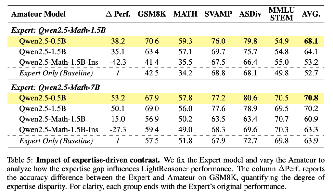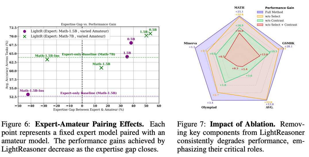 LightReasoenr发现:领域专业知识差异比参数规模差异更重要。这意味着我们不再需要维持庞大的“业余模型”来获得教学信号,大大降低了这种“学习新范式”的实用门槛。