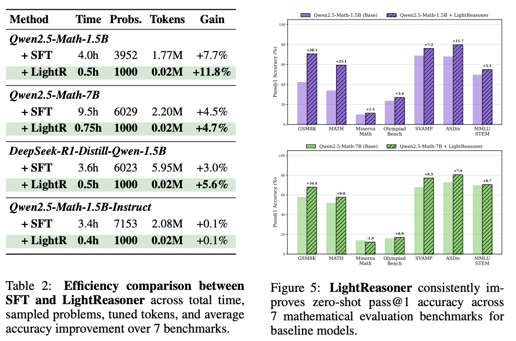 LightReasoner研究团队在7个数学推理基准、5种不同模型上的实验表明: