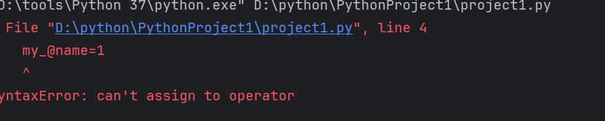 可见前三个变量命名都合格了,第四个变量名称里@并不在命名范围内所以报错。此时我们删去第四个在运行代码成功运行: