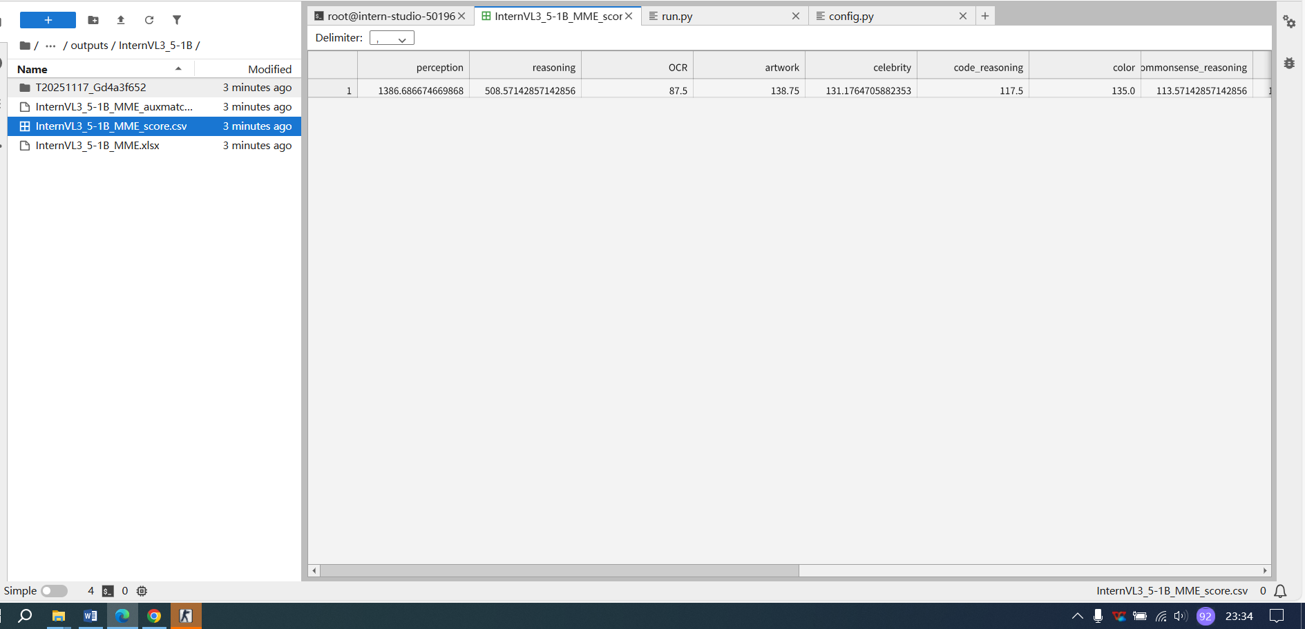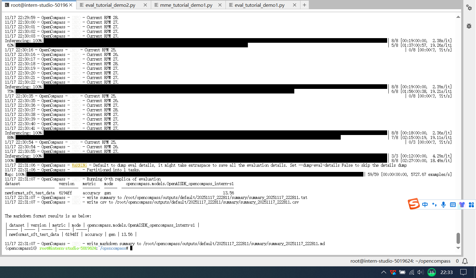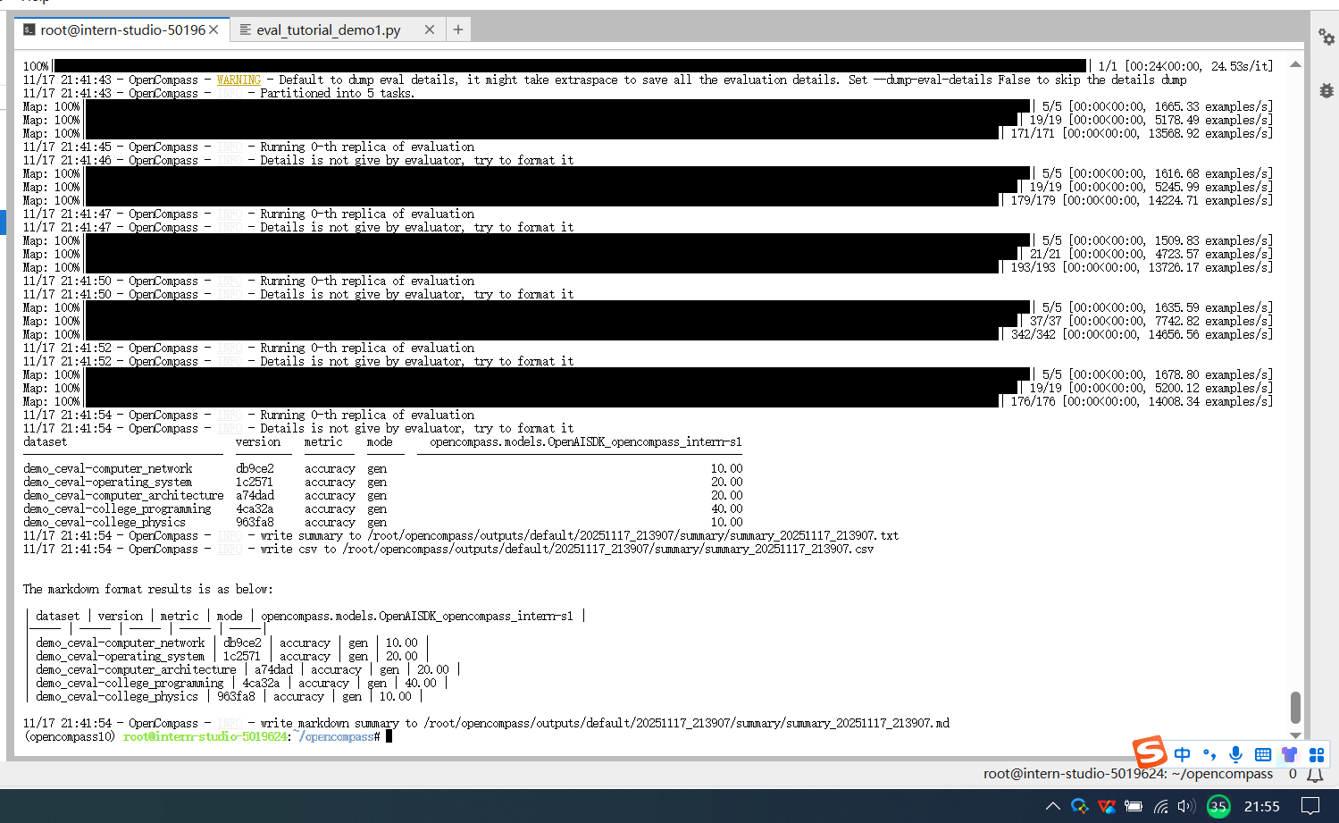 使用 OpenCompass 评测 Intern-s1(C-Eval数据集) 和 InternVL(MME数据集) 并在飞书文档中详细记录到飞书文档