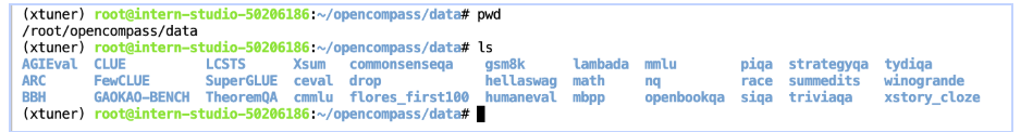 将会在 OpenCompass 下看到data文件夹,里面包含的数据集如下图所示: