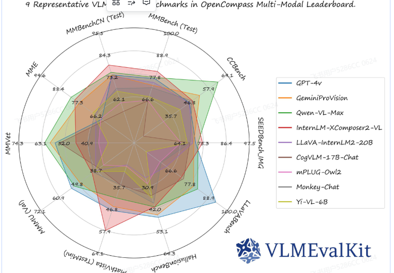 模型性能比较:通过VLMEvalKit,用户可以轻松比较不同多模态模型在各种任务上的性能。该工具包提供了详细的评测结果,并支持将结果发布在OpenCompass的多模态整体榜单上。