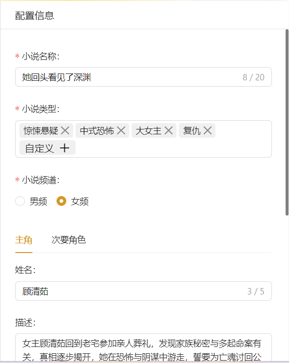 ✍️ 正文生成: 产出的ai的小说内容“人味”重不重。