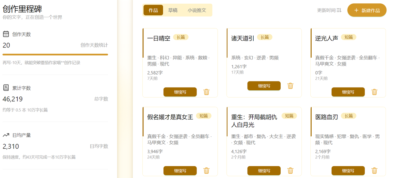 ✅ 本土化接地气: 它的ai生成小说内容“网文味”很足,懂“系统”、“打脸”、“金手指”,比GPT/Claude那种“翻译腔”好入口。而且作品能保存在站内,不怕数据丢失,续写也方便。