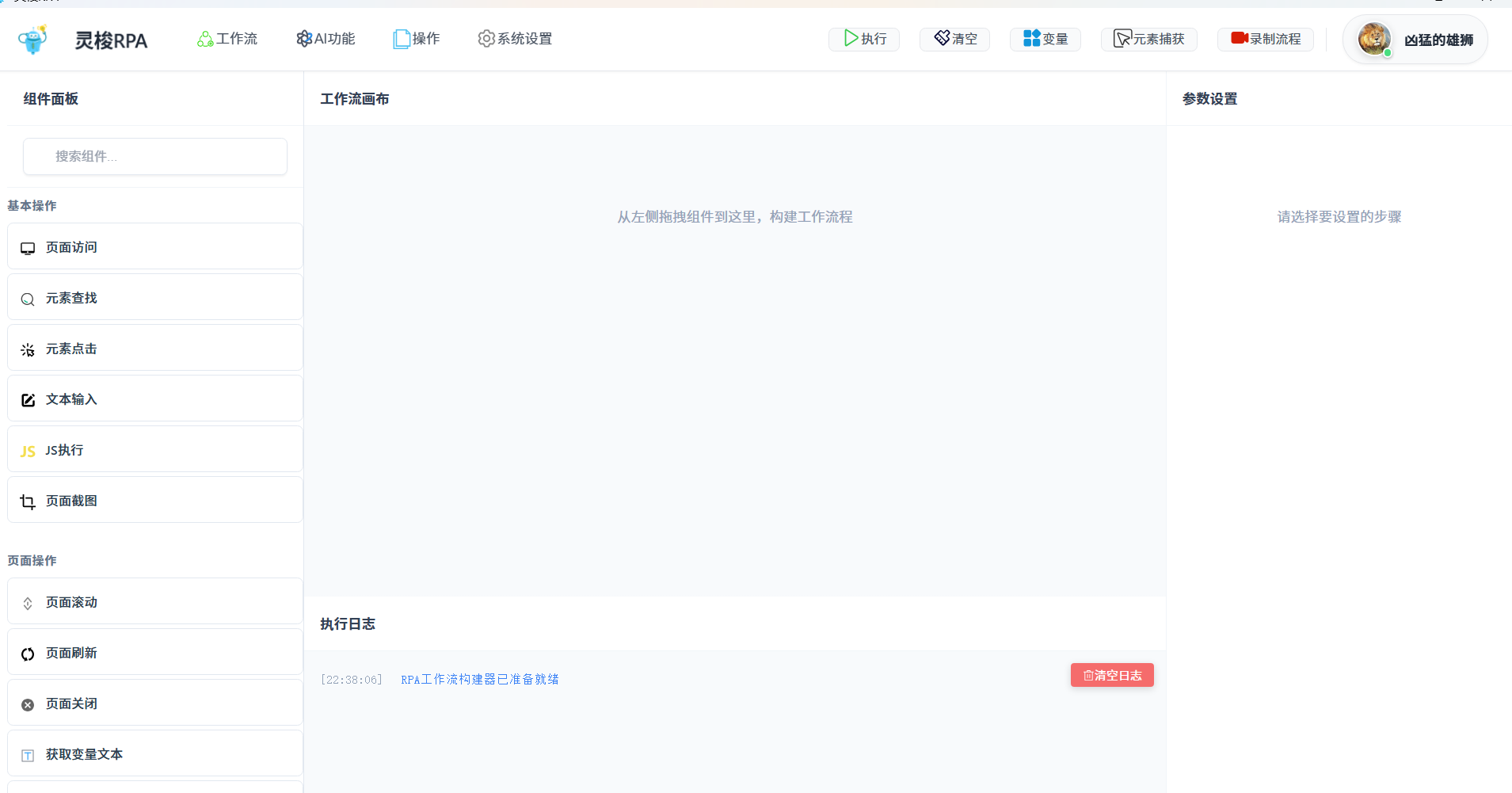 这是我最早被震撼到的功能。以前搭流程,得自己拖拽模块、设置循环判断,很复杂。但在灵梭RPA里,我只需要和一个AI助手对话。