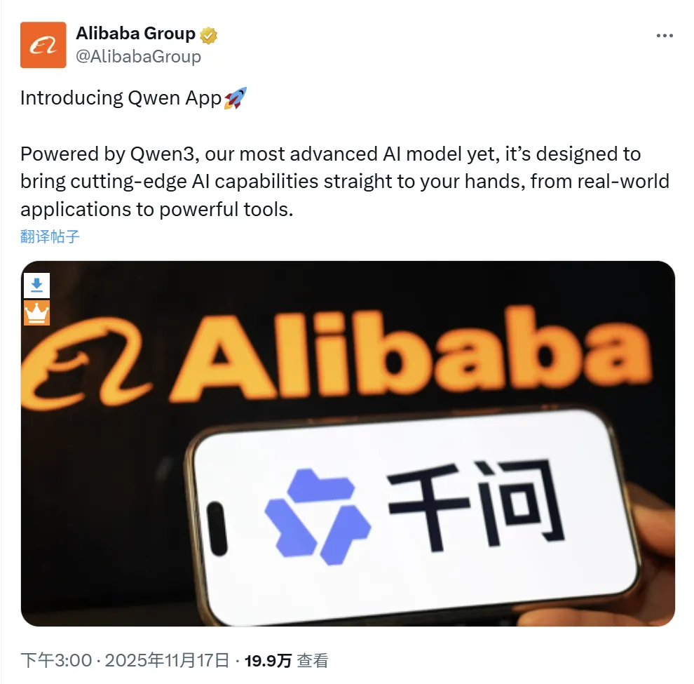 2025 年 11 月 17 日,阿里巴巴正式推出了全新的 AI 应用——千问 APP,这款基于全球性能第一的开源模型 Qwen3 打造的 AI 助手,定位为 "会聊天、能办事" 的个人 AI 生产力工具。与市场上其他 AI 应用相比,千问 APP 最大的特色在于不仅能够进行智能对话,更能帮助用户完成实际任务,覆盖工作、学习、生活三大场景。