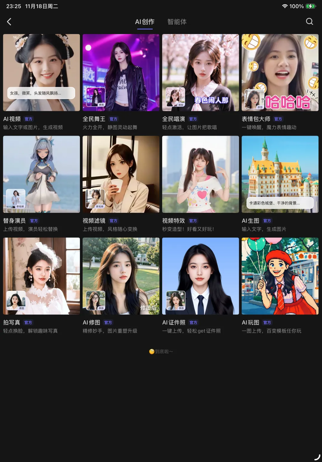 AI 创作功能包括 AI 修图、AI 生图、AI 生视频等,展现了千问在视觉 AI 领域的实力。