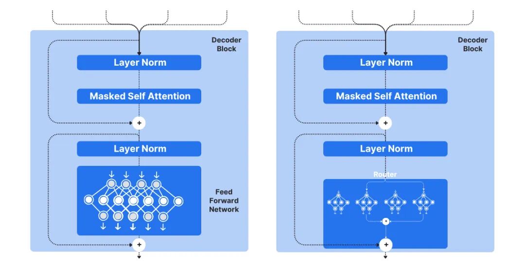 - MoE 决定了模型的哪些部分应该处理每个输入。