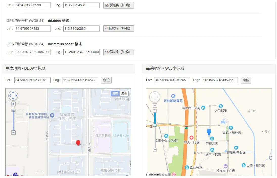 利用纠偏网站进行纠偏:合宙所有的 GNSS 功能的坐标系均使用国际标准 WGS-84 坐标系,所以开发者在国内常见地图定位时,会发现与实际情况有几十米的误差。这并非模块问题, 而是国内地图采用了非标坐标系所致。 国内常见地图如高德地图使用 GCJ-02 坐标系, 百度地图使用 BD-09 坐标系,故此开发者需要对模块输出的经纬度进行加偏处理,才能在国内的地图上实现精确定位。