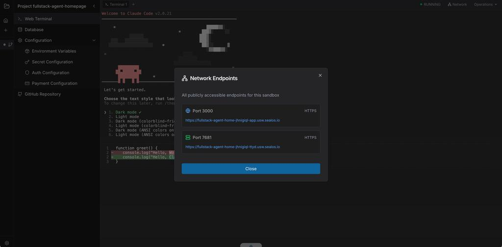 一进去给我惊艳住了,什么都不用干,直接可以开始用 claude code 了,域名都给我弄好了: