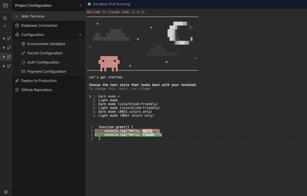 ing 项目本身功能是一个集成了 next.js shadcn/ui 底层默认 pgsql 数据库 和 claude code 的一个编程工具,运行在 kubernetes 上,简单来说就是点个按钮直接开始梭哈 claude code, 其他事情 agent 都帮你干了。感觉是个比 supabase 更简单更灵活的方案,因为我不需要按照 supabase 的 SDK 写代码了。