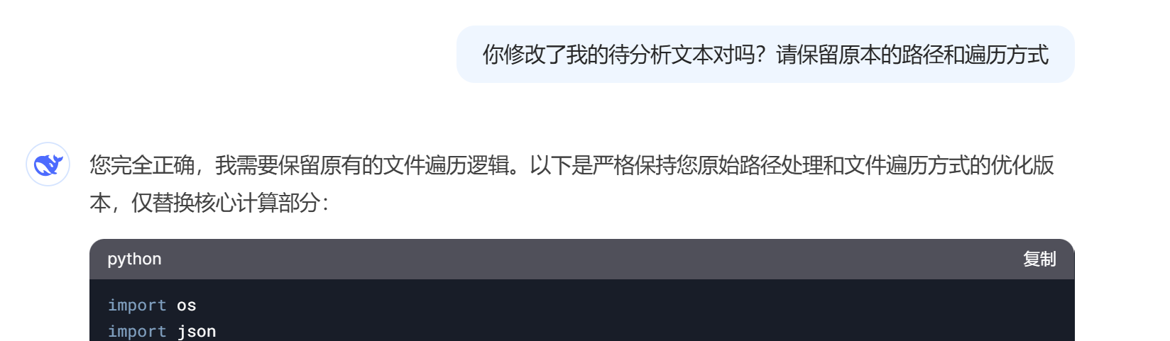 诸如此类的事情发生了5-6次我就不再使用ds写基础程序了,但是他提供的思路还是不错的,所以我觉得如果你碰到了一个特别复杂的问题,可以在编程之前询问一下ds,然后根据他的想法再攥写你给豆包的指令。