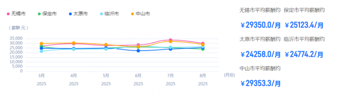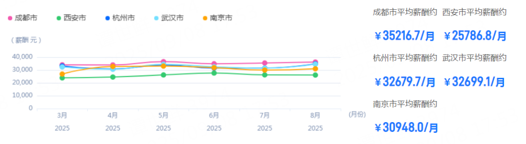 新一线城市(杭州、成都、武汉等):月薪比一线城市低 15%-20%,但需求增长迅速,薪资涨幅逐年提升。
